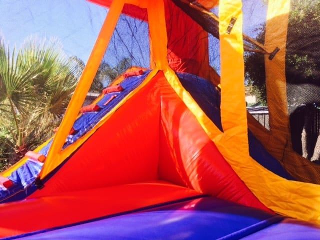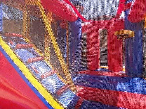 Our Backyard combo direct from the US is a qaulity castle indeed! Perfect for kids parties at home with its awesome layout featuring a great bounce area, basketball ring, climb and slide all in 4.5x5.5m floor space! Available plain or in a huge range of themed banners!