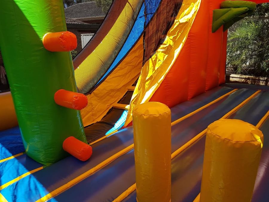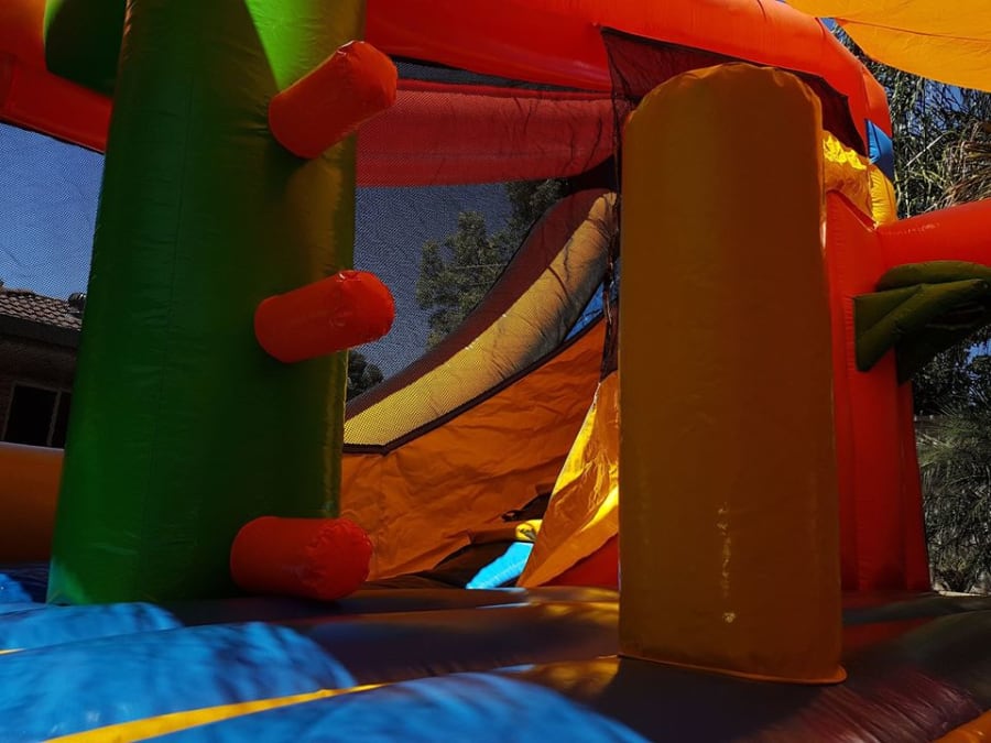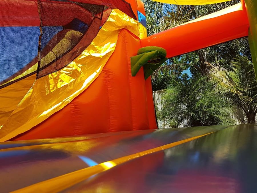 Our super slide 5in1 combo castle has it all: big bounce area, massive slide, basketball ring, obstacles and more! Beautiful bright colours and digital graphics make this castle stand out from the crowd.