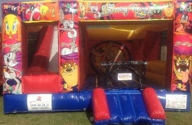 The Looney Tunes Combo consists of it own basket ball ring inside the bounce area, it also has a great sized slide inside the castle to keep those kids entertained for hrs.