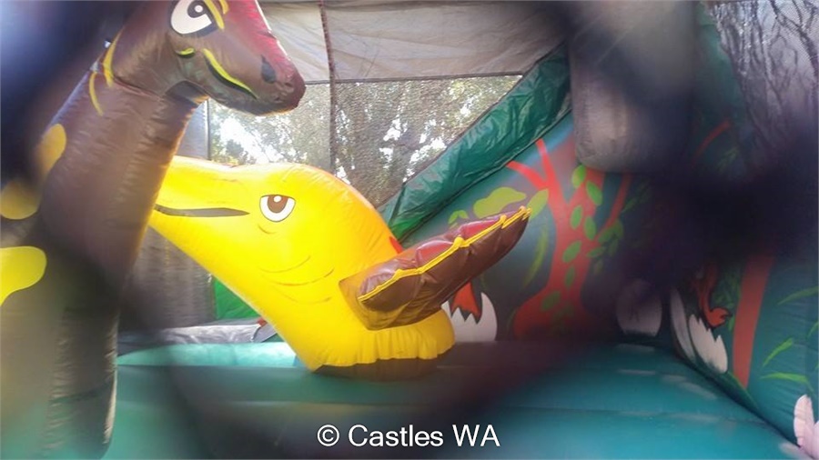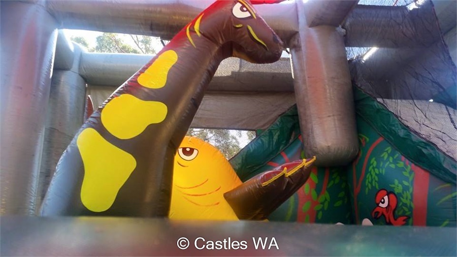 There is a rock climbing slide, dinosaur obstacles to interact with, and a bounce area. It is fully enclosed, and offers sun and rain protection. This castle is suitable for work parties, birthdays, functions and corporate events.