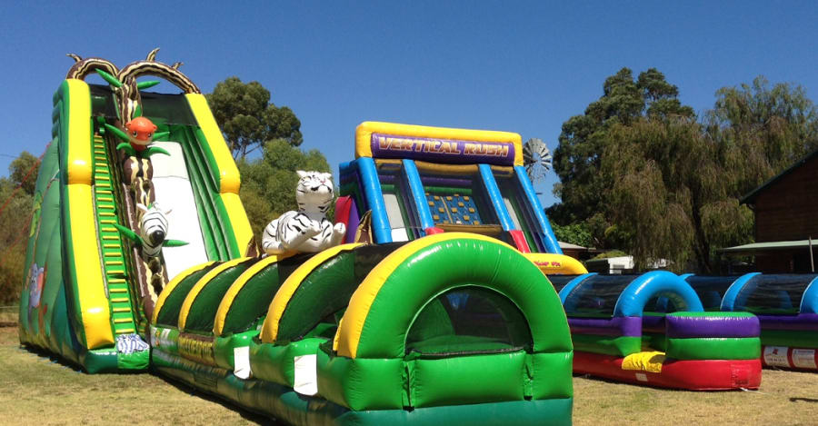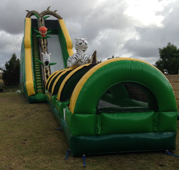 Come Play on the Massive water slide in the jungle, Take a massive climb to the top with all the animals , then get it wet over 20metre down the slip`n slide and meet the white tiger at the bottom, great for the parties, events or anyone that has the space for all ages young and old, if the little ones don't make it too the end, we`ve even designed an extra exit in the ride so they don't hold the line up.