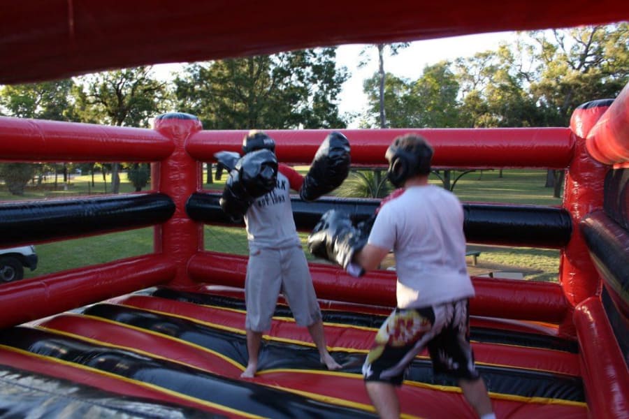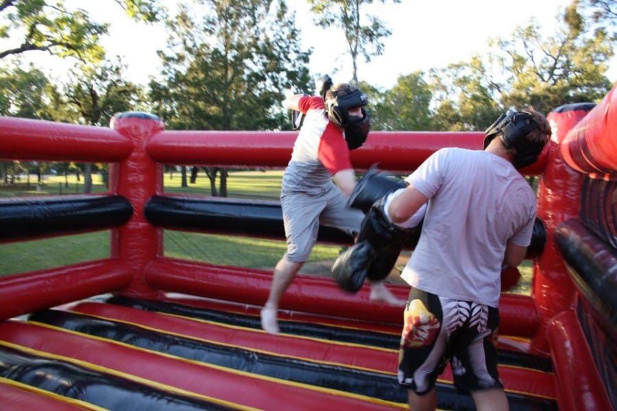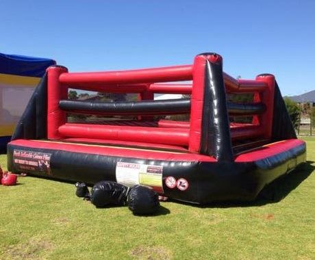 Large Inflatable boxing ring. Oversized boxing ring and protective helmets or face masks are provided