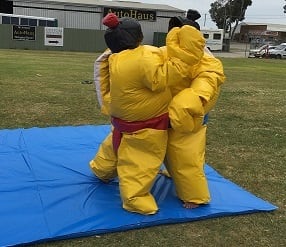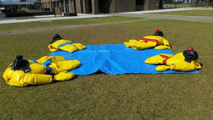 Dressed in a full-body padded suit and headgear with giant boxing gloves – you will have lots of fun wrestling your opponent.